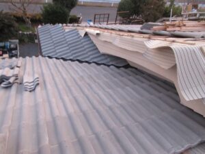 かなり劣化がひどく、塗装では対応できないほどの状態でしたので、下地から新しくする「葺き替え工事」を行いました。